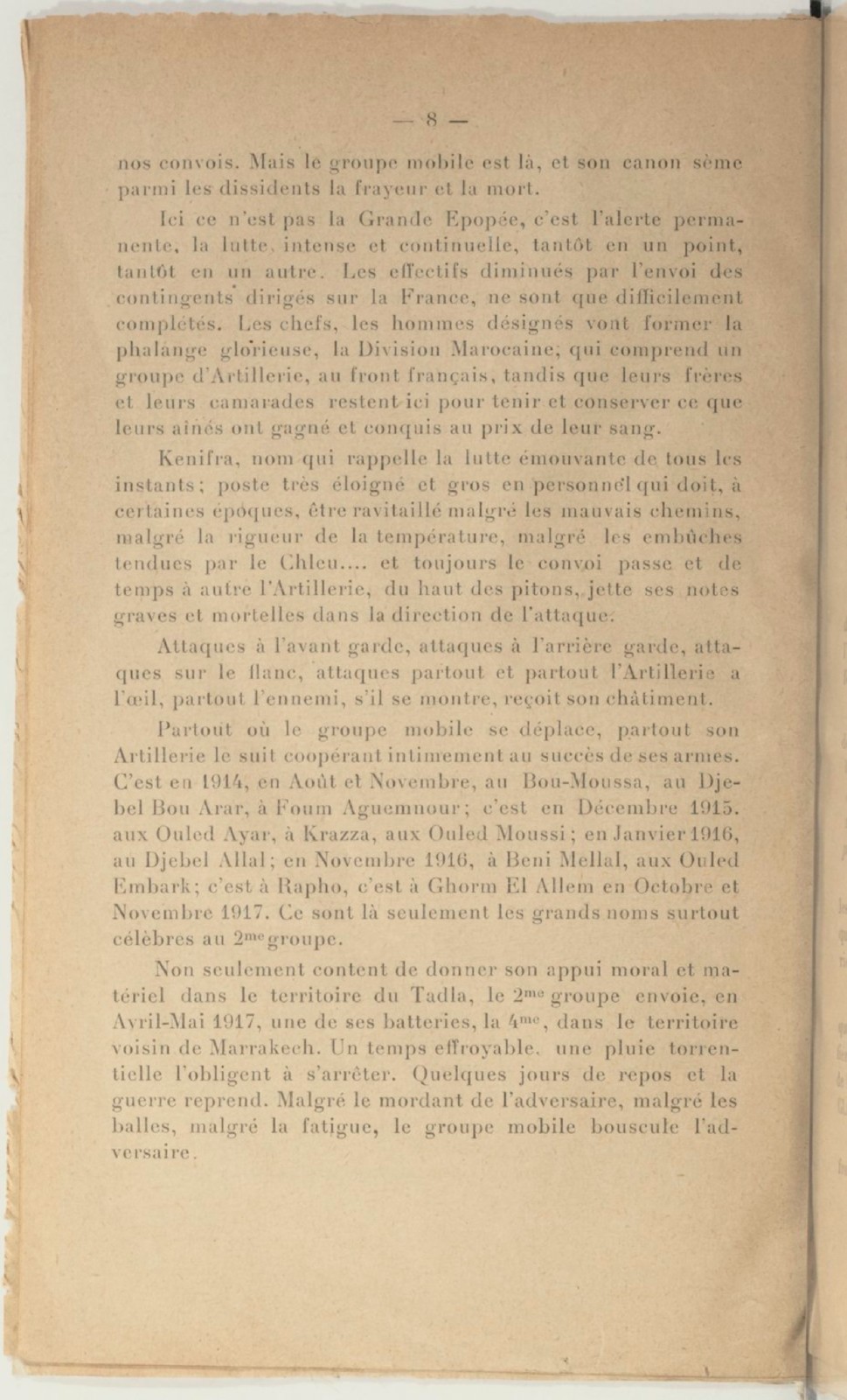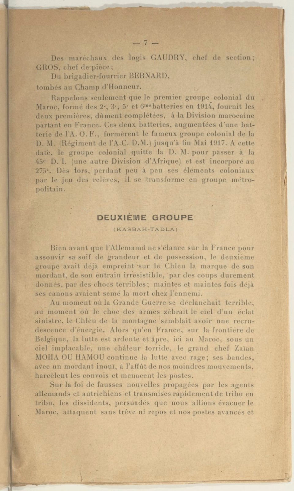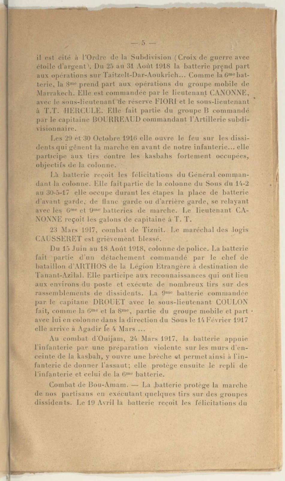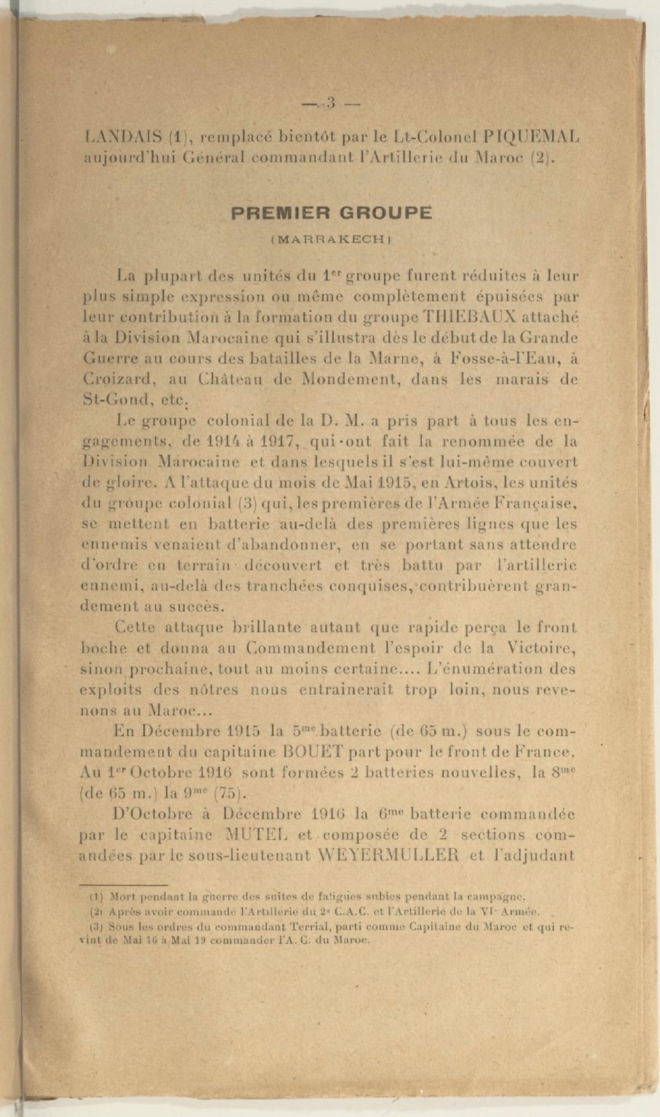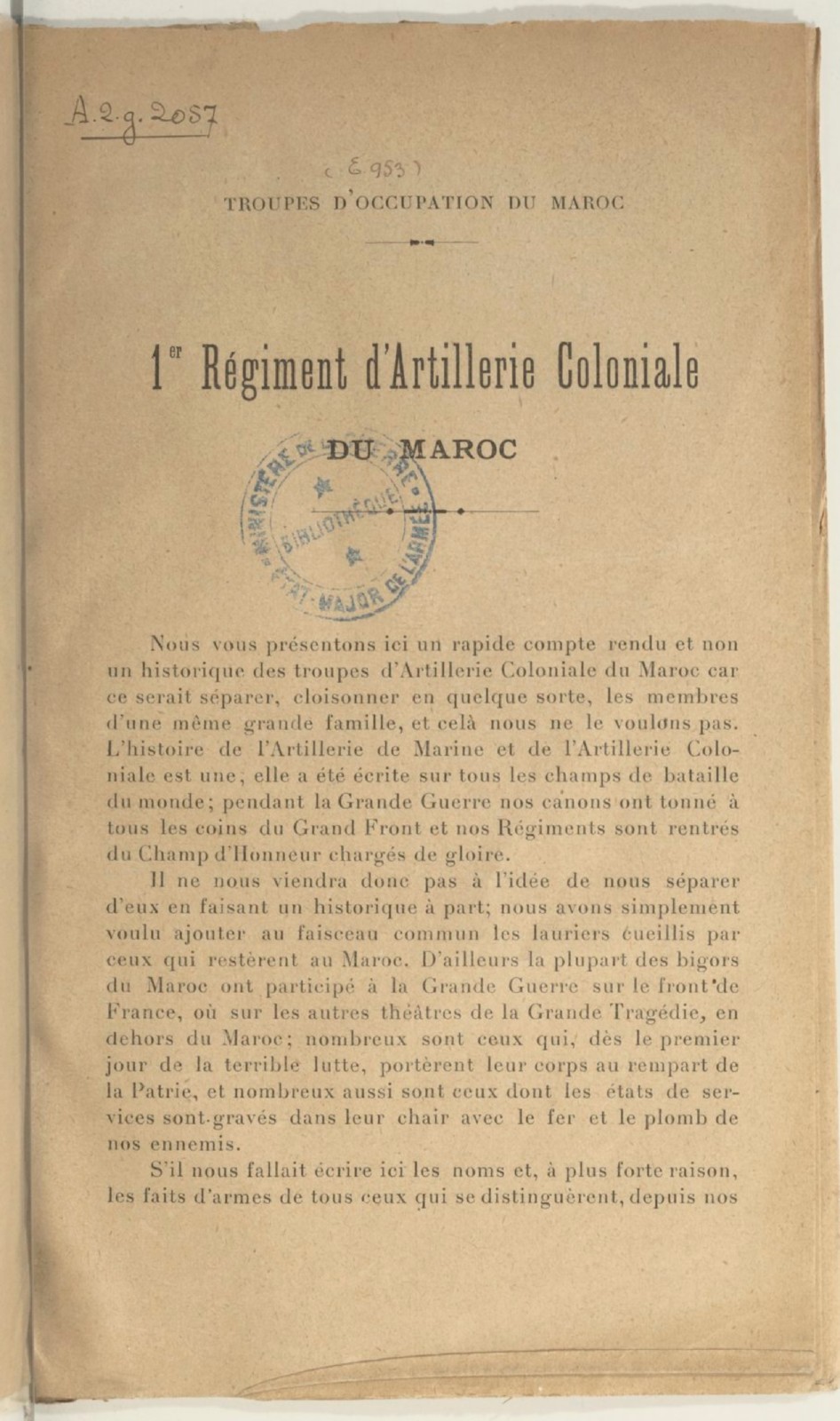 Historique des Troupes de l'Artillerie Coloniale du Maroc