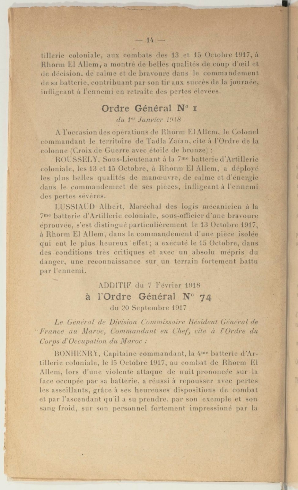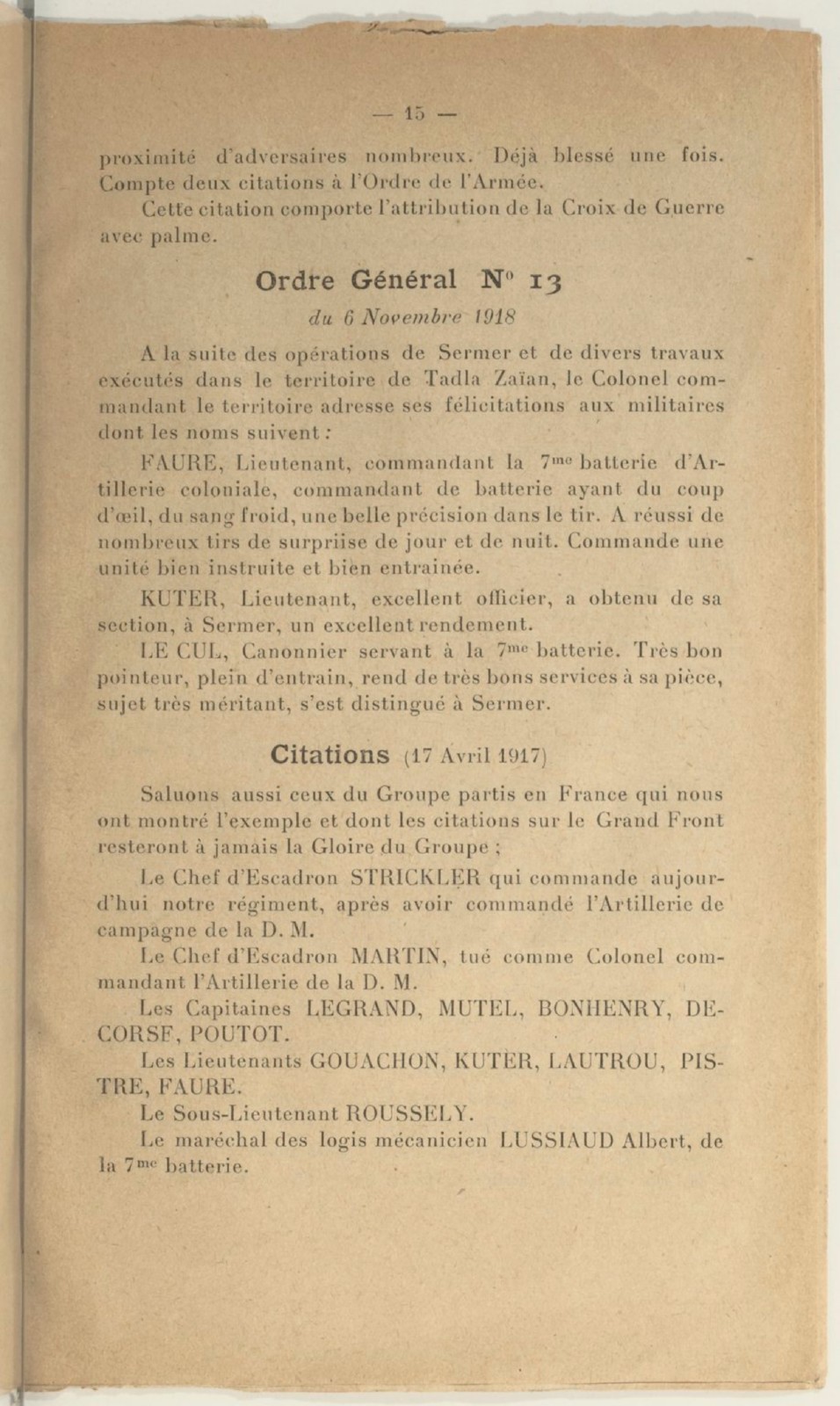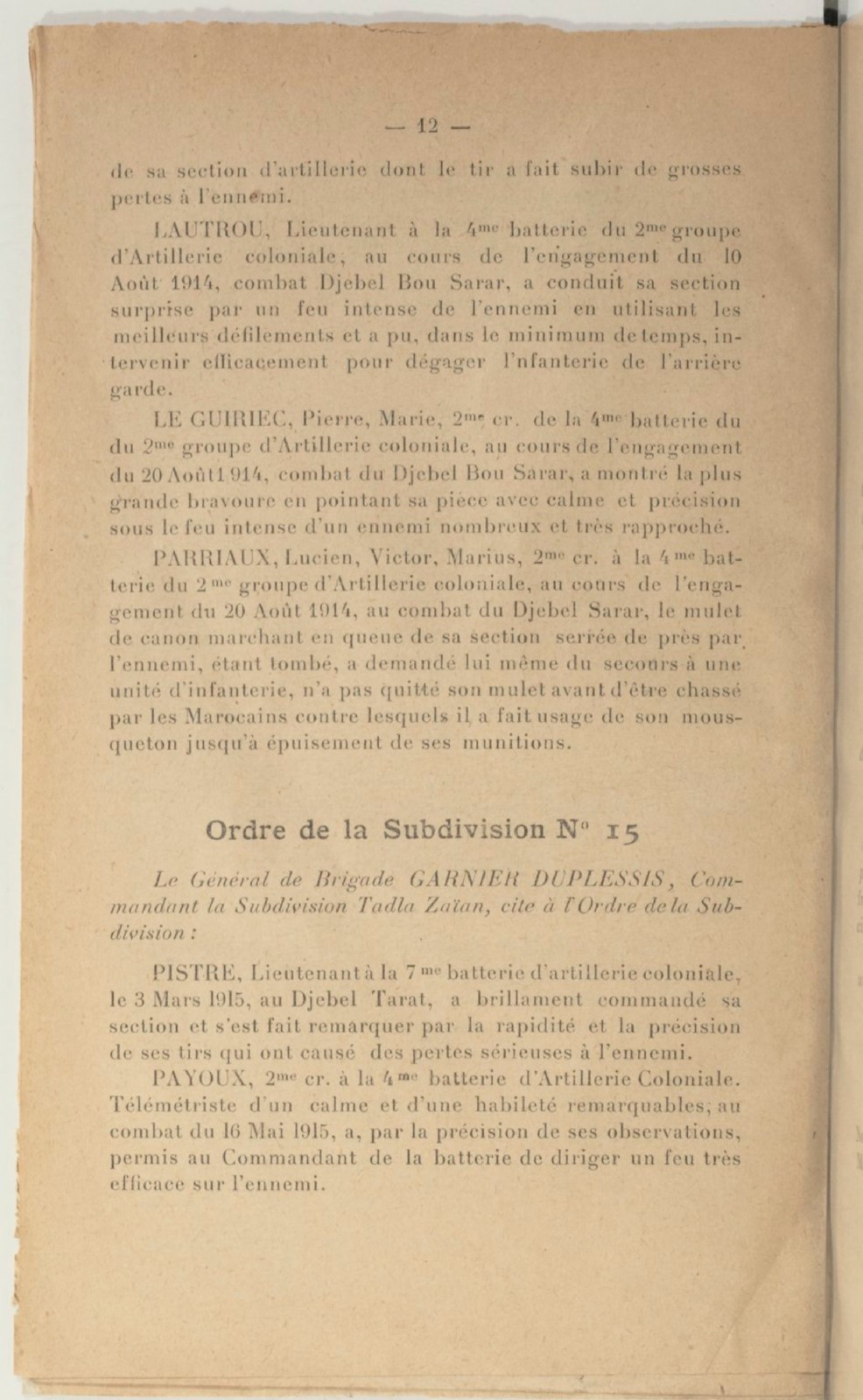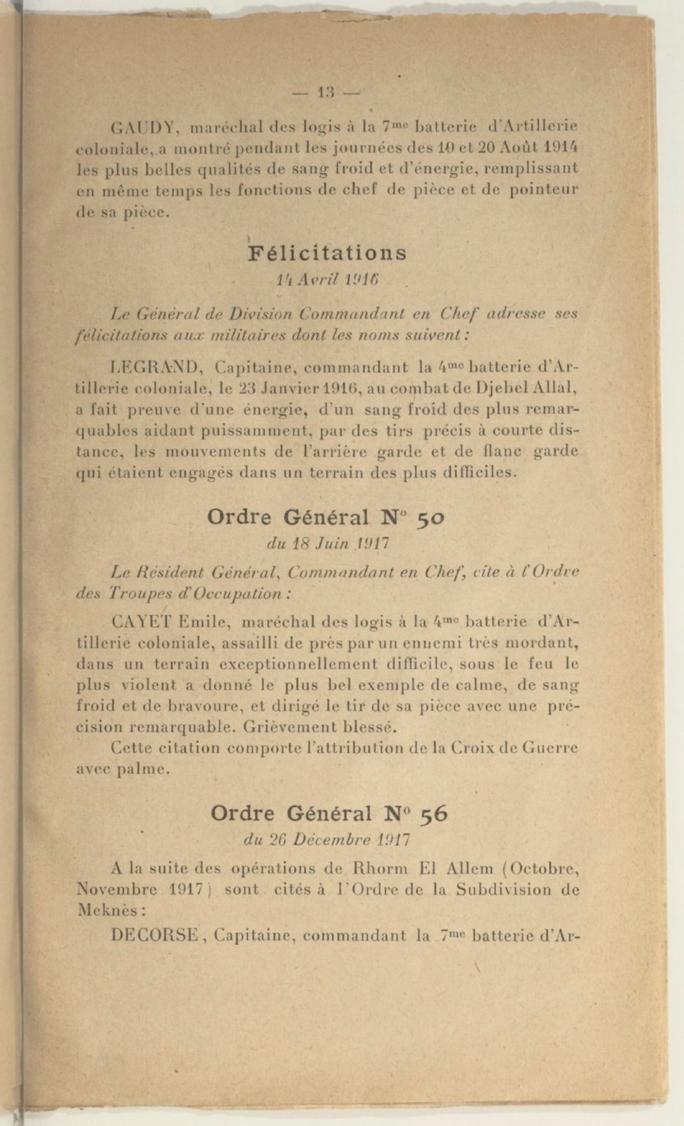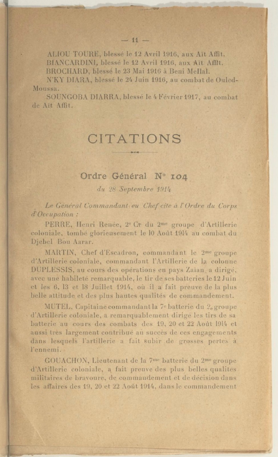 Historique des Troupes de l'Artillerie Coloniale du Maroc