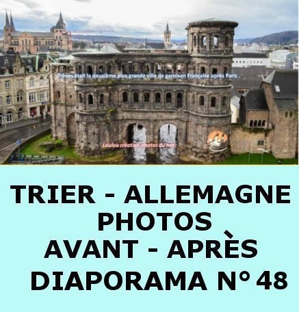 Je remercie chaleureusement LOULOU Jean-Louis (Sergent-chef Jean-Louis KIERZKOWSKI.) d'avoir créé ces diaporamas sur Trèves - "avant et après" (en téléchargement garanti sans risques) qui rappelleront de bons souvenirs à toutes celles et à tous ceux qui ont connu cette belle ville.