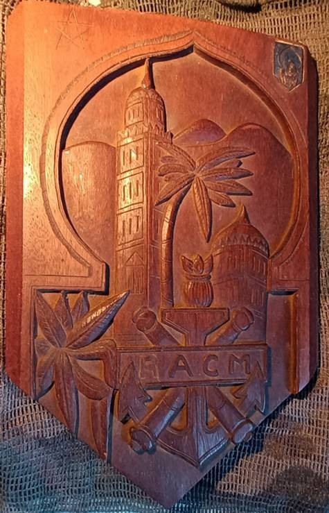 Plaque bois H 36,5 cm probable artisanat marocain supposé 1930/1940.