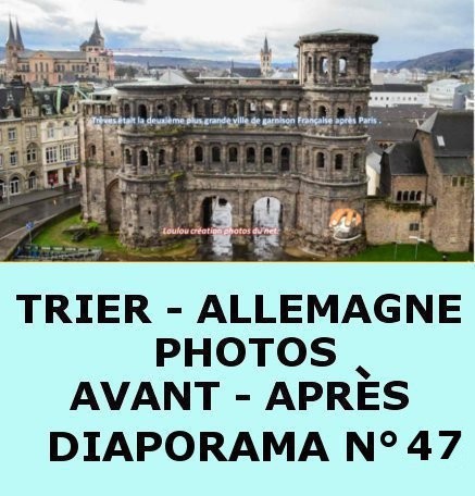 Je remercie chaleureusement LOULOU Jean-Louis (Sergent-chef Jean-Louis KIERZKOWSKI.) d'avoir créé ces diaporamas sur Trèves - "avant et après" (en téléchargement garanti sans risques) qui rappelleront de bons souvenirs à toutes celles et à tous ceux qui ont connu cette belle ville.