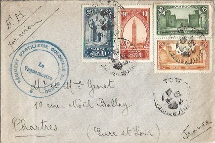 LETTRE F.M Maroc envoyée du RACM (1929 ?).